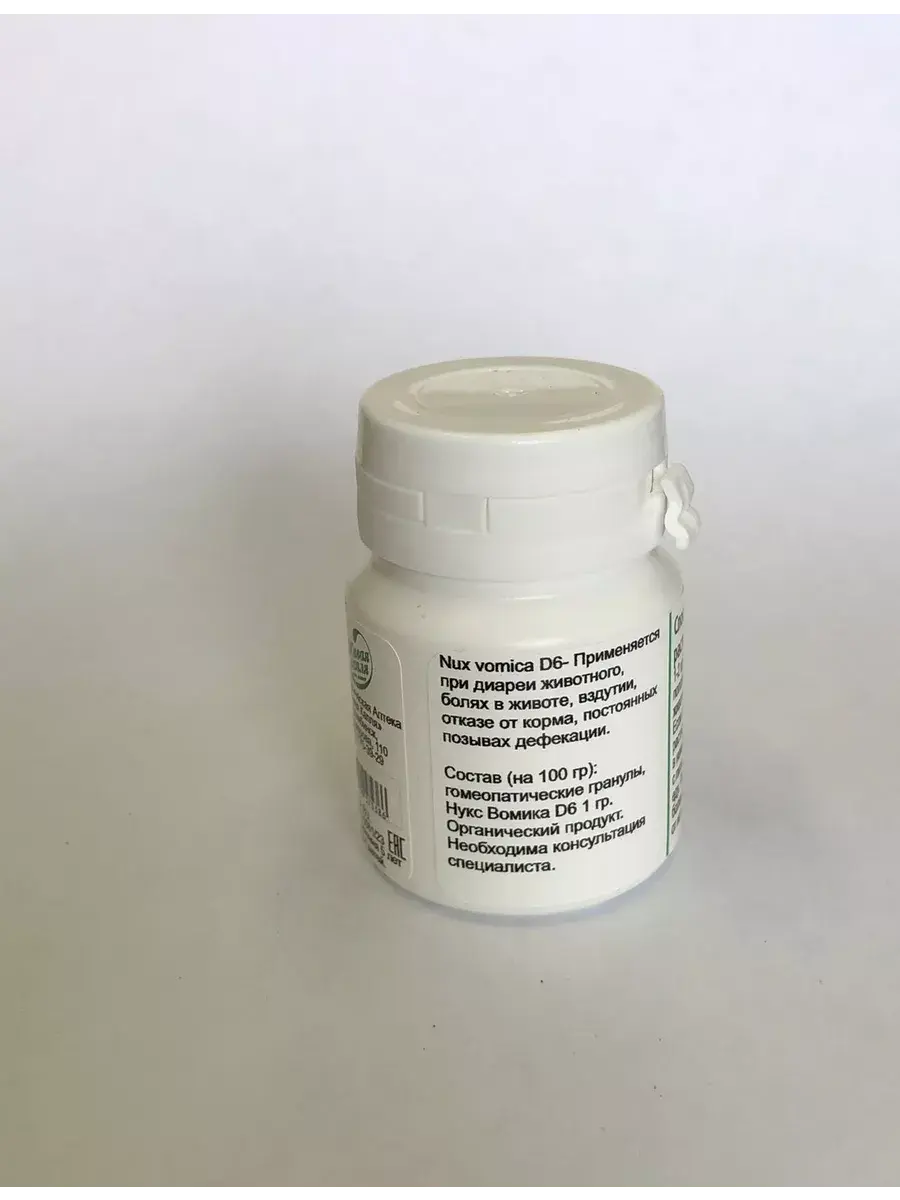 Nux vomica D6- Применяется при диареи животного, болях в животе, вздутии, отказе от корма, постоянных позывах дефекации.
